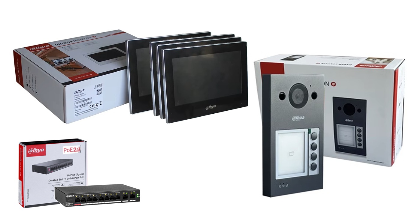 Dahua IP Video intercom Kit met 4 Drukknoppen / 4 Woningen – PoE of WiFi met twee deuropeningsrelais