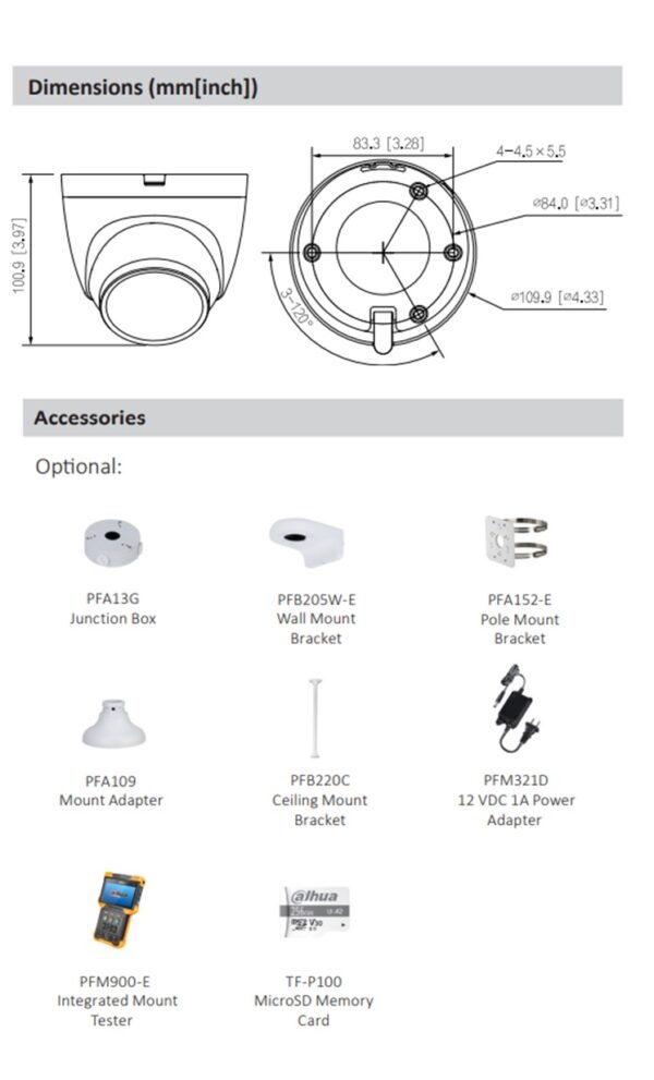 • Capteur d’image CMOS 1/2.7’’ 8MP, faible luminosité et image haute définition.